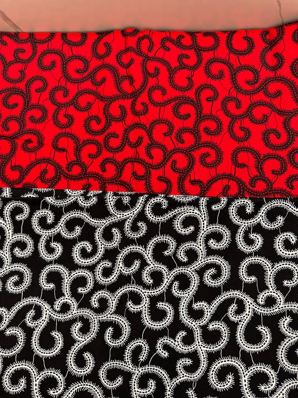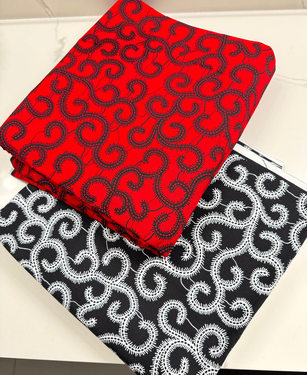 MM511 Mix Match african fabric pair Red/ black swirl macaroni African Fabric/ ankara/ african Wax Print/ ethnic print/ African Material/ Doll Cloth