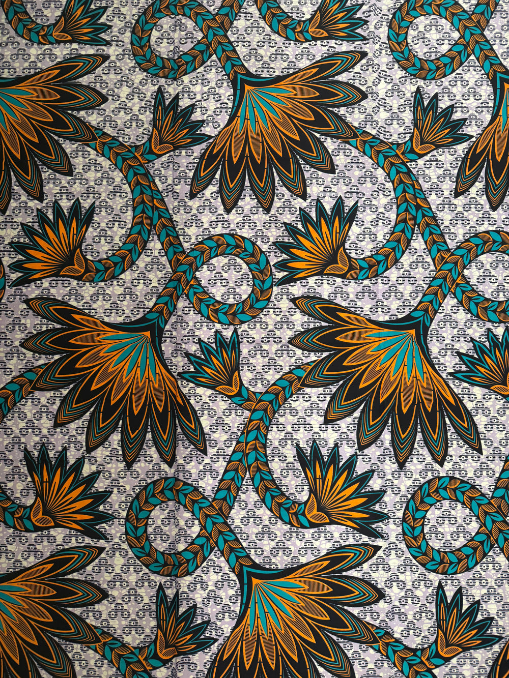 A1103 turquoise Blue brown orange floral cord design per yard African Fabric/ African Wax print/ African Material/ cloth/ Sew Dress/ dolls/ African home decor