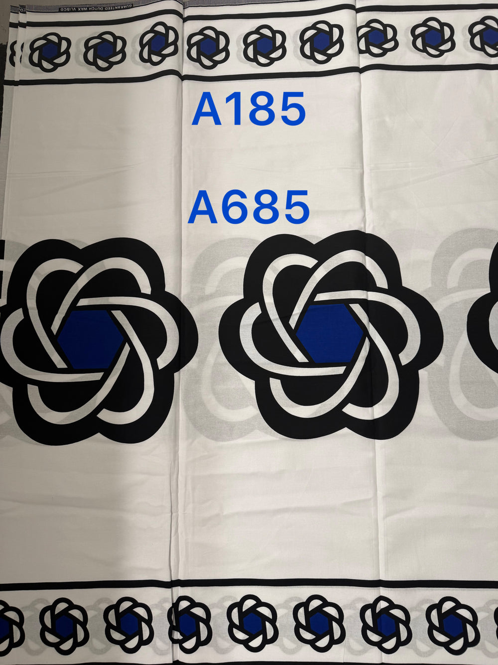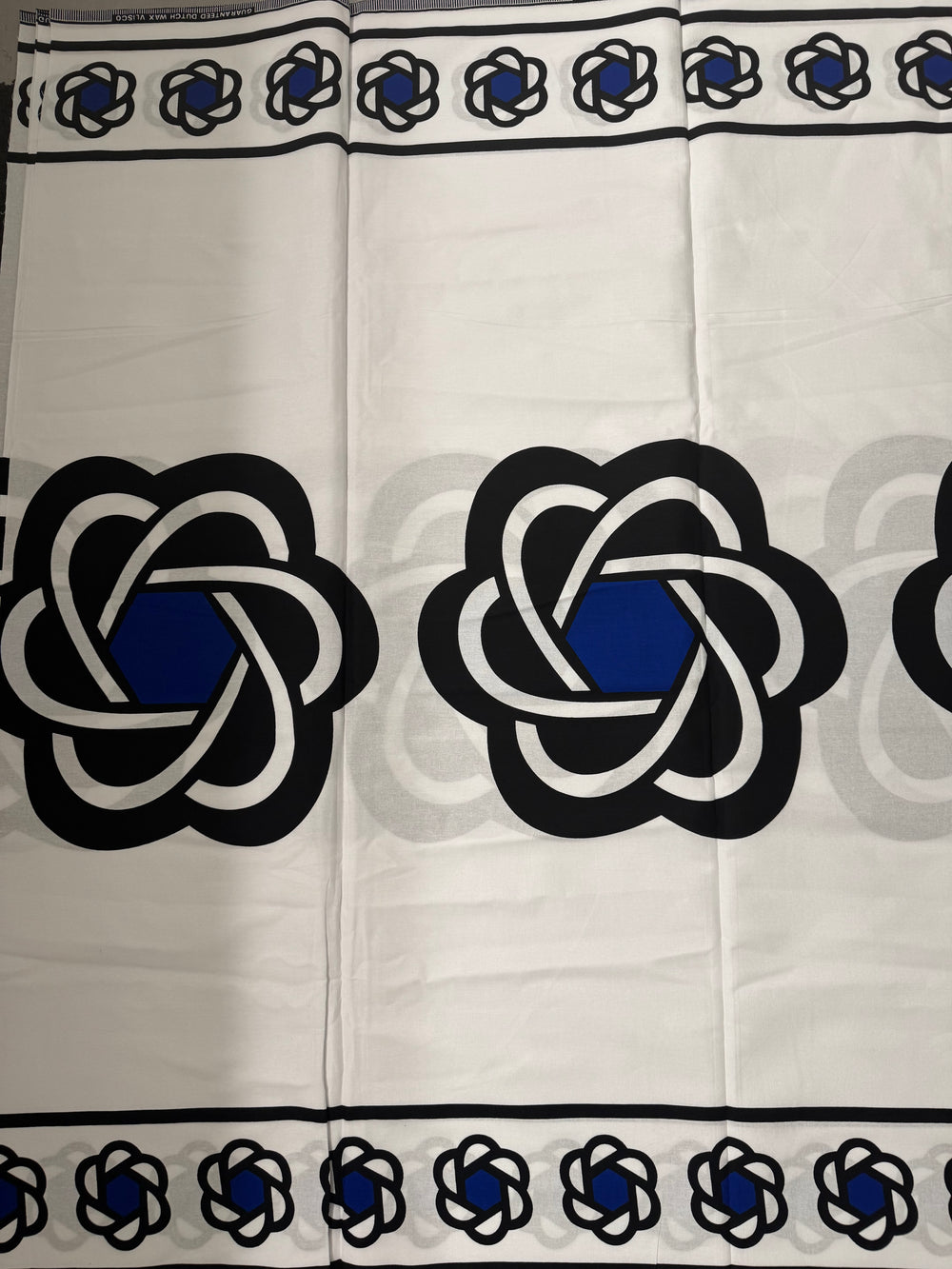 A185 Blue white black floral symbol Design African Fabric/African Wax print/ Ankara for Sew Dress/ African Art/ cloth dolls