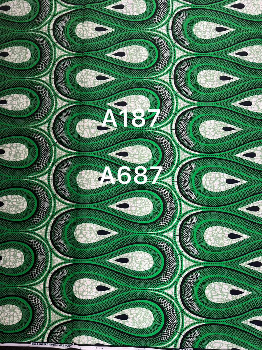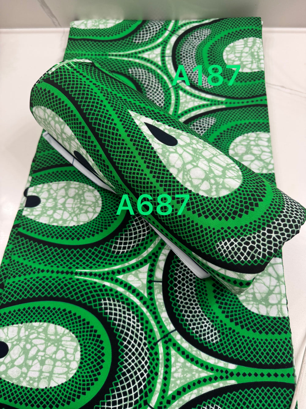 A187 1 yard Green white African Fabric/ African Wax print: Ankara for Sewing Dresses/ shirts/ African art/ Doll/decor