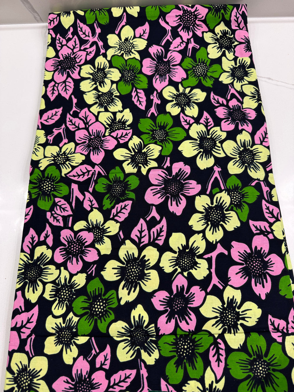 Gorgeous Green pink Design 1 yArd African fabric. This print feels very soft and gentle on the skin, making it perfect for both formal and non-formal outfits as well head wraps, quilting, throw pillows, home accent decor , doll making and more. The pics don’t do it justice. It looks even better in reality.