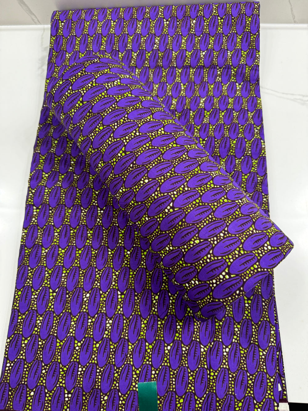 A190 African fabric per yard yellow purple cowry shell ethnic print home decor wholesale African ankara Fabric