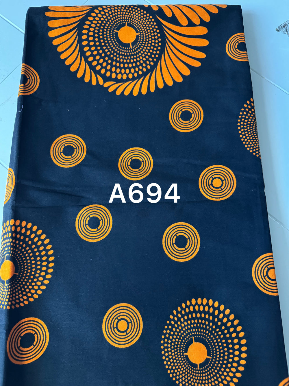 A194 African fabric by yard black orange Swirl / African Wax print: Ankara for Sew Dresses/African art/tribal print
