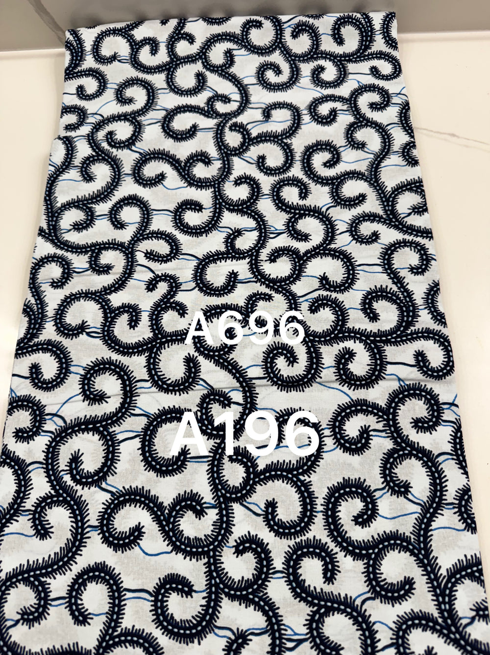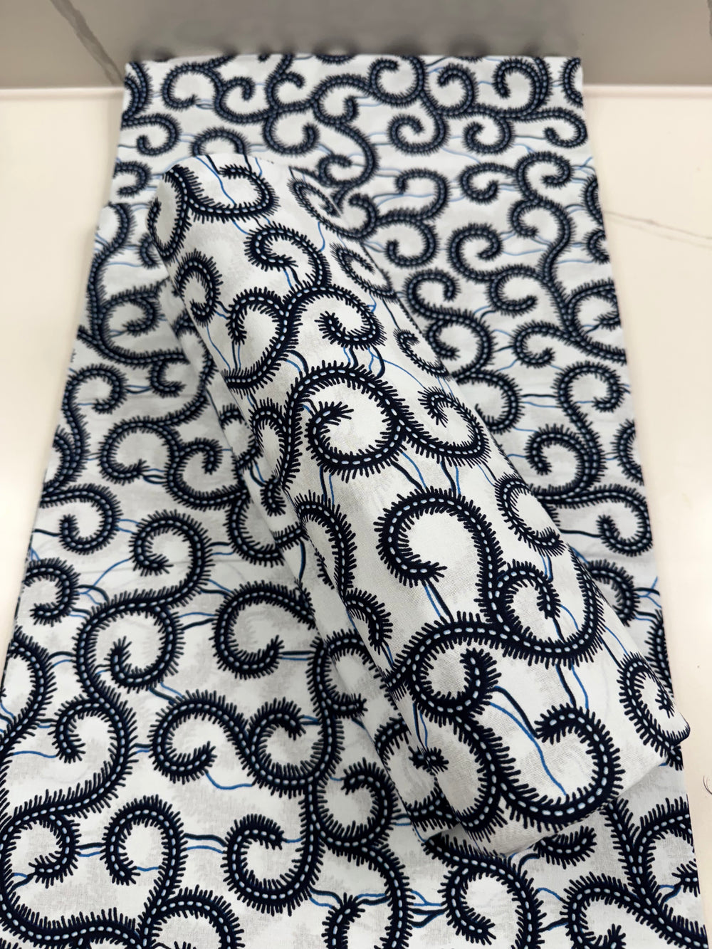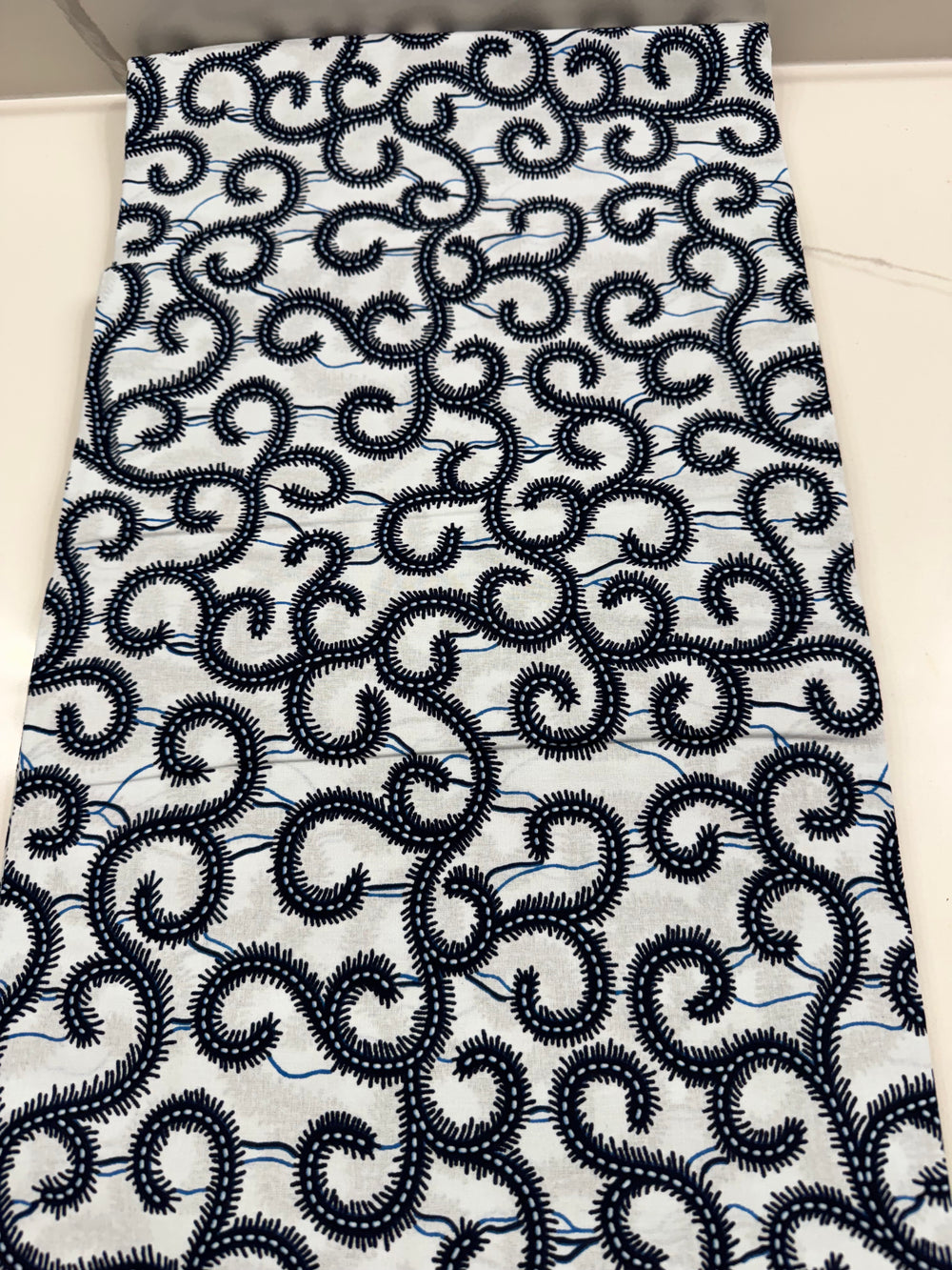 A196 Blue white black macaroni swirl symbol Design African Fabric/African Wax print/ Ankara for Sew Dress/ African Art/ cloth dolls