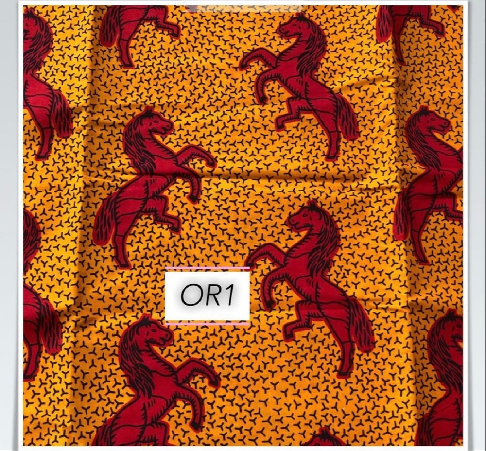 OR1 African fabric per yard orange red jumping horse ethnic print home decor wholesale African ankara Fabric