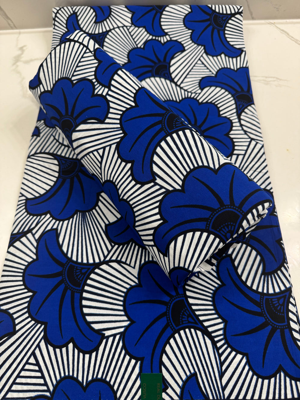 A6100 6yards Royal Blue/white floral Kitenge african Fabric/ african Wax print/ Ankara/ Material/ cloth/ wrapper