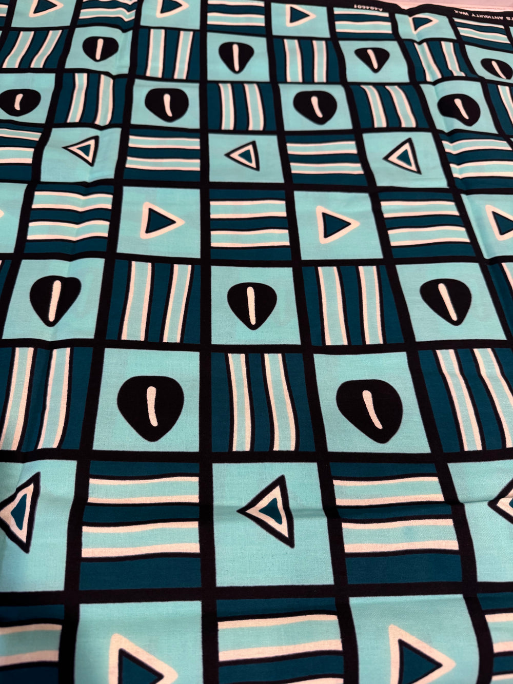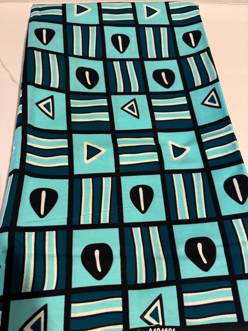 Teal Blue white Design per yard cotton African fabric/Ankara. This fabric is dramatic and beautiful. It will be perfect for a formal or non formal outfit as well as doll making, quilting, upholstery, throw pillows and other home decor projects. Each yard is 36x44 inches and if you purchase more than one yard I will send you a continuous piece