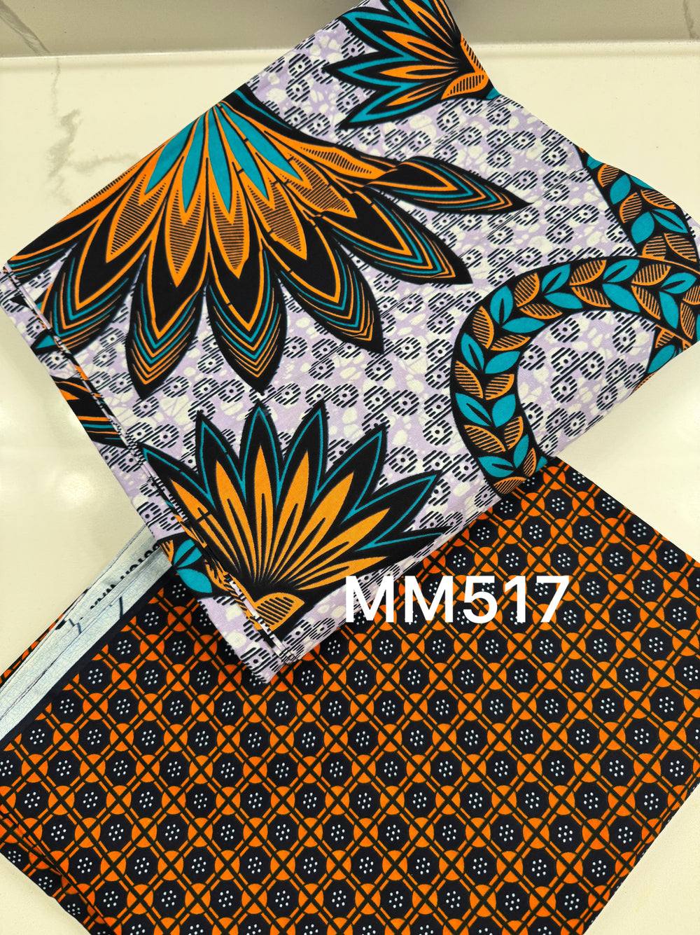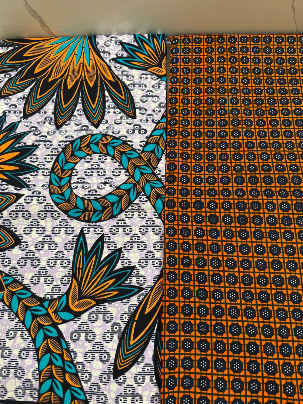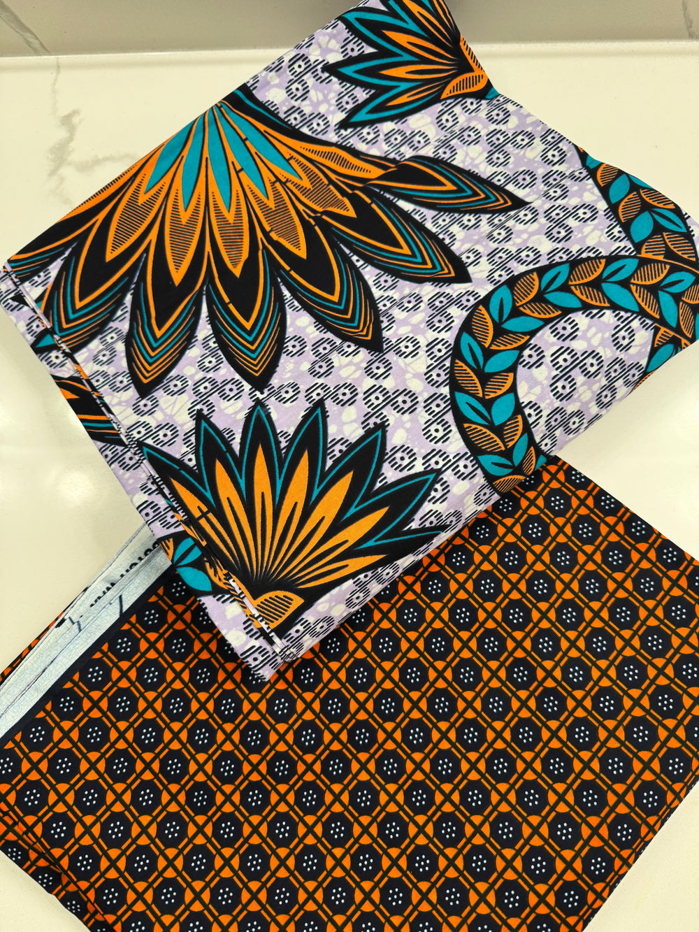 MM517 3 yard each teal green/ Brown orange Mix Match dice Design African Fabric/ African Wax print/ Ankara/ African Material Cloth